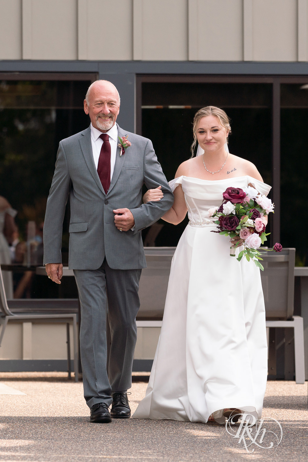 - I love this. The whole day up to the ceremony was very cloudy, rainy to start. Tessa and her dad walked down the aisle to “Here Comes the Sun” by the Beatles. When they started walking down the aisle, the sun came out! It was awesome.
