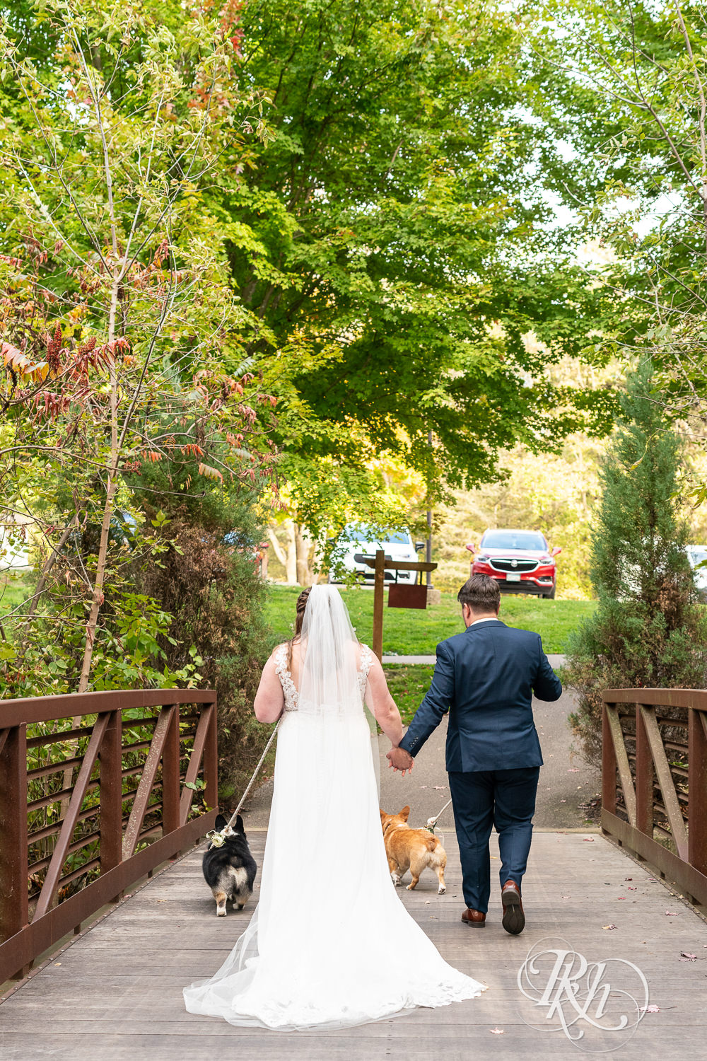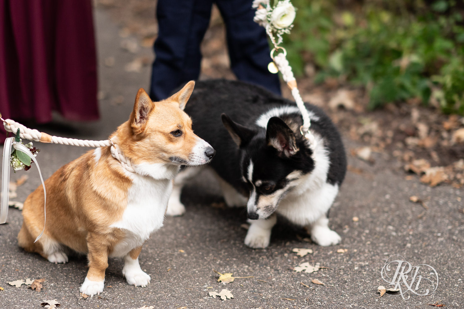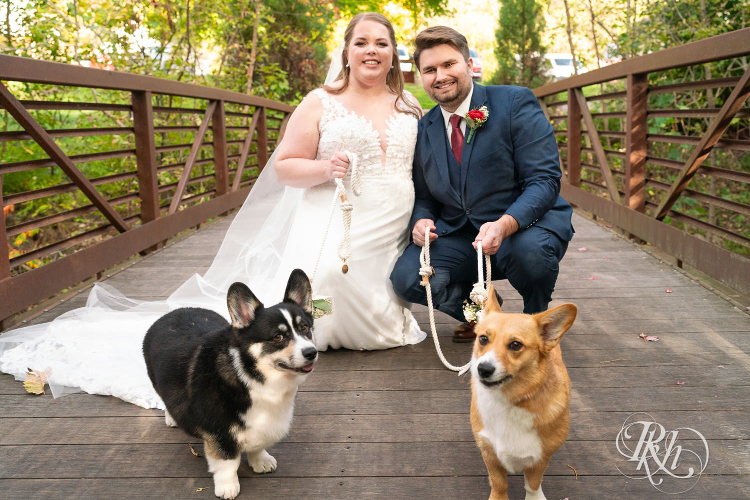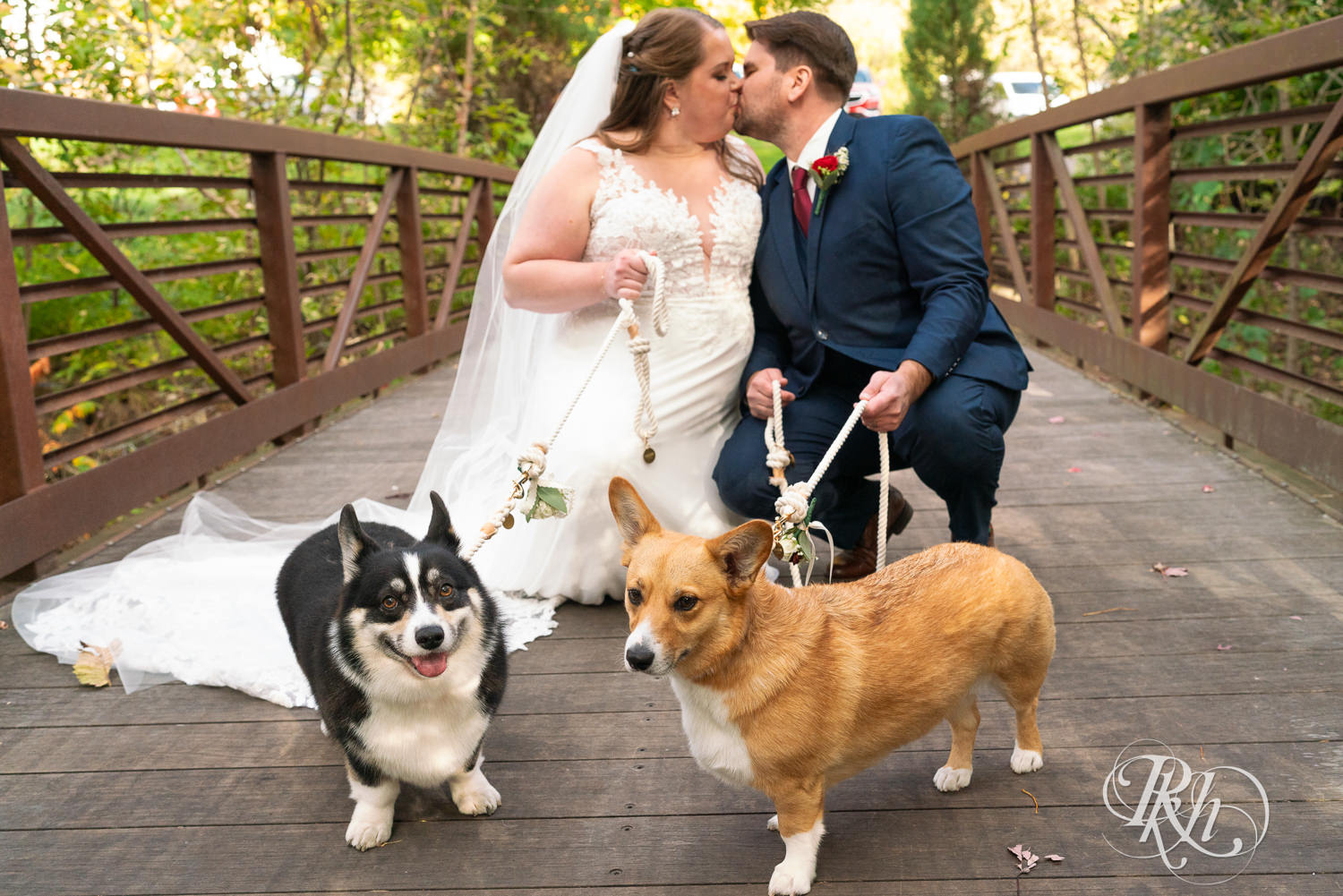 We originally met Ashley and Matt at their engagement session. It was so funny because we were driving around looking for parking. We had no idea what they looked like because we hadn’t met them prior. Then, we saw a couple with two Corgis. We knew instantly that was them. They are just our type of people. It was such a fun session. When we met for our second consult, we were so excited to hear that the dogs were going to be in the wedding too.