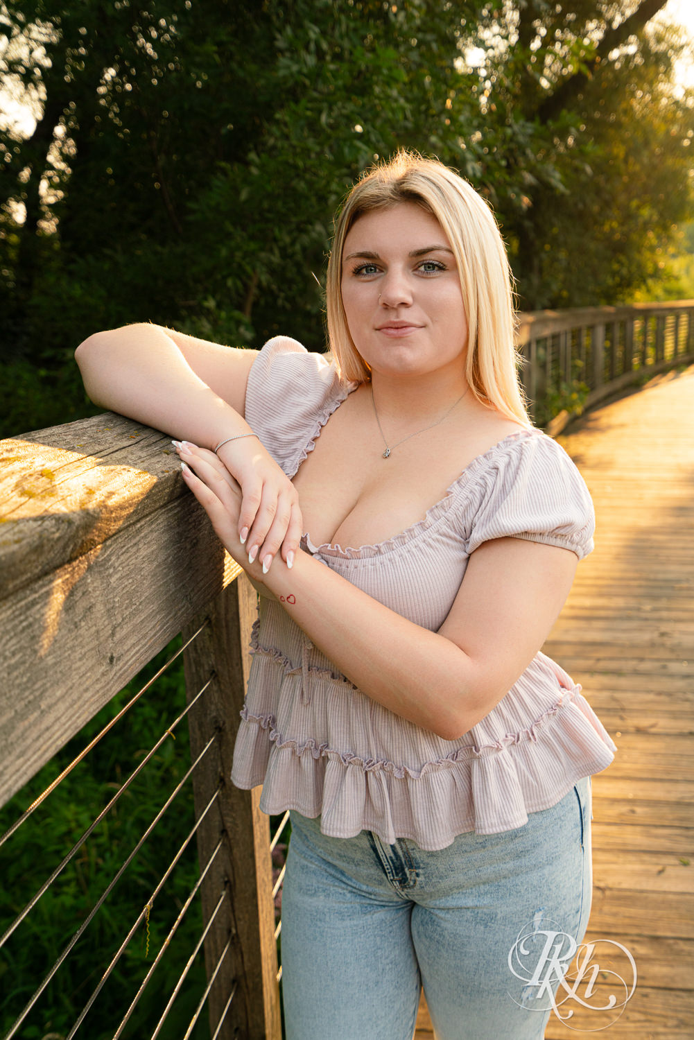 Shooting at sunset in the park gave us that golden-hour magic every photographer dreams about. The light filtering through the trees, the open trails, and the scenic spots around Lebanon Hills all came together to complement Elise’s relaxed and casual vibe. We shoot so many sessions here. It’s wonderful for variety with the lakes, woods and more.